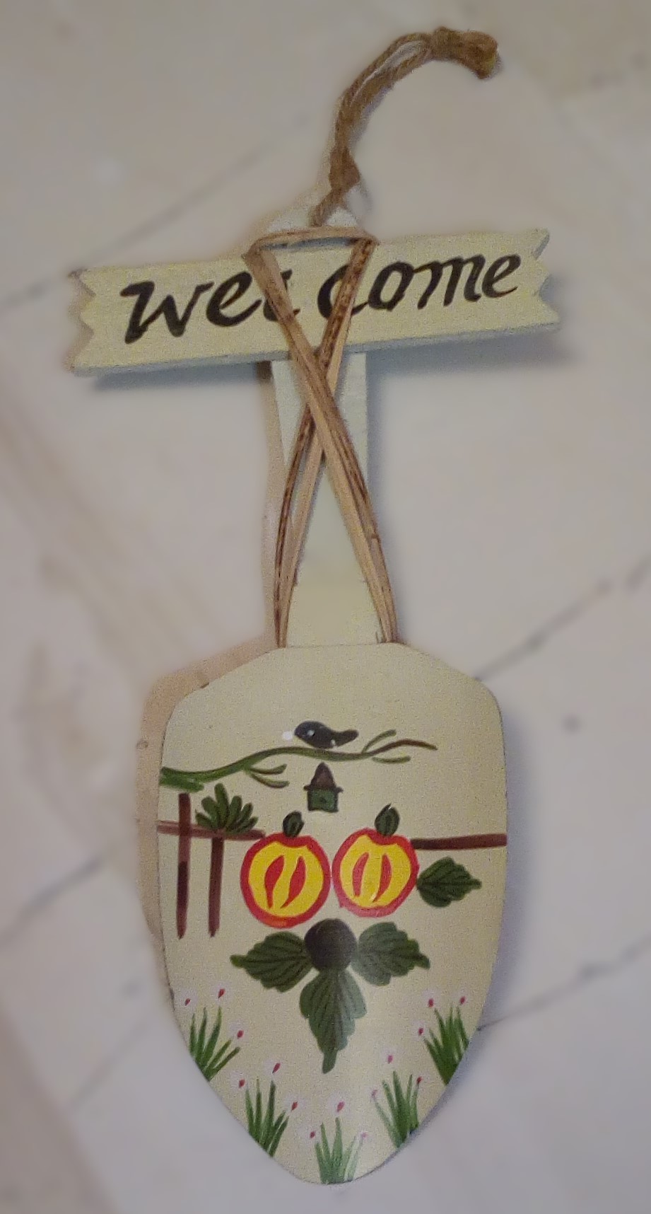 Χειροποίητο Φτυάρι-Welcome-μπεζ. Φτιαγμένο από μέταλλο, ξύλο και σπάγγο. Χειροποίητο βάψιμο. Επιτοίχιο διακοσμητικό. Διαστάσεις: ύψος 27.5cm x μήκος 8.5cm το φτυάρι κι η ταμπέλα 13.5cm μήκος + 10cm το σχοινάκι.