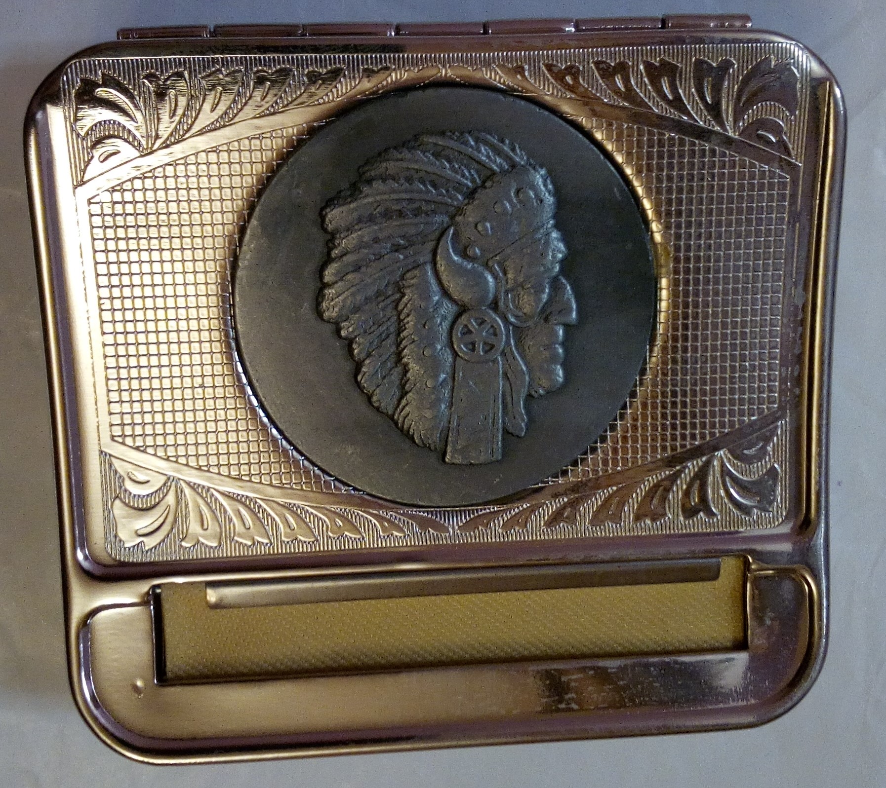 Ταμπακιέρα-στρίφτης με χαραγμένη φιγούρα Ινδιάνο