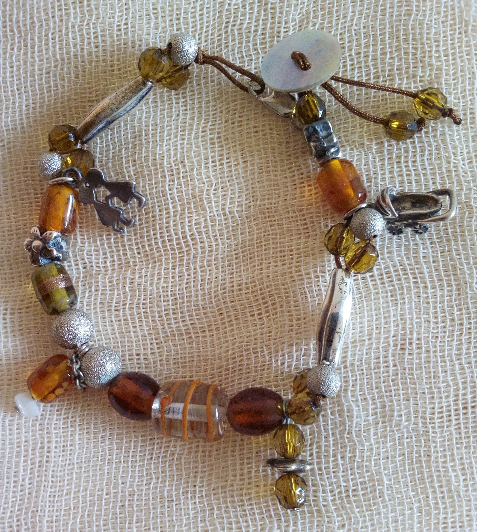 Cosa Nostra Handmade Bracelet – Orange-Brown Beads & Couple, Baby Carrier. Χειροποίητο βραχιόλι με κορδόνι, κουμπί-φίλντισι, μεταλλικά στοιχεία (ζευγάρι, παιδικό καροτσάκι), χάντρες (μεταλλικές, γυάλινες, απλές), επάργυρο κούμπωμα. Μήκος ≈22cm.