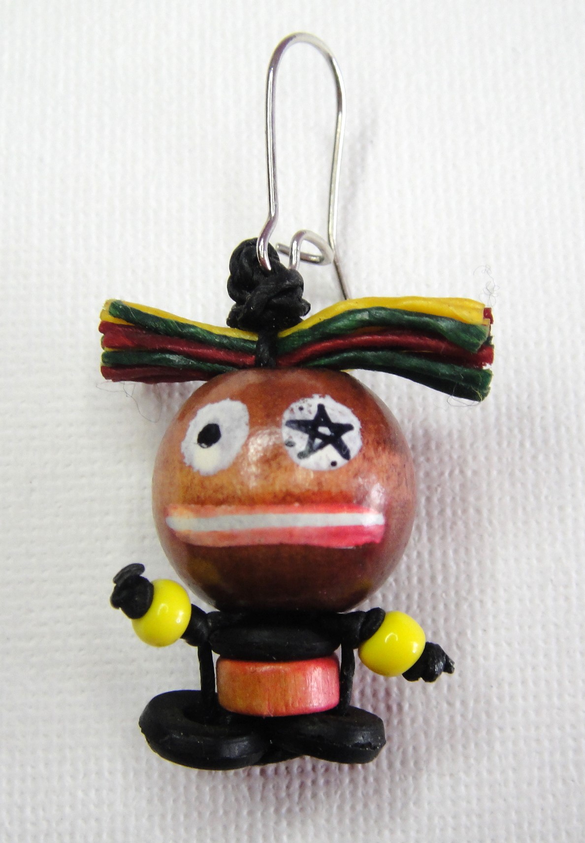 Cosa Nostra Handmade Earrings – Voodoo Doll – Hawaii Man Red/Black. Εισαγόμενα χειροποίητα σκουλαρίκια Voodoo Doll από ξύλινες κι απλές χάντρες, κορδόνι, κερωμένη κλωστή, ζωγραφισμένο στο χέρι σε νίκελ βάση. Συνολικό ύψος: 4.5cm/Βουντού κουκλάκι: 3cm.
