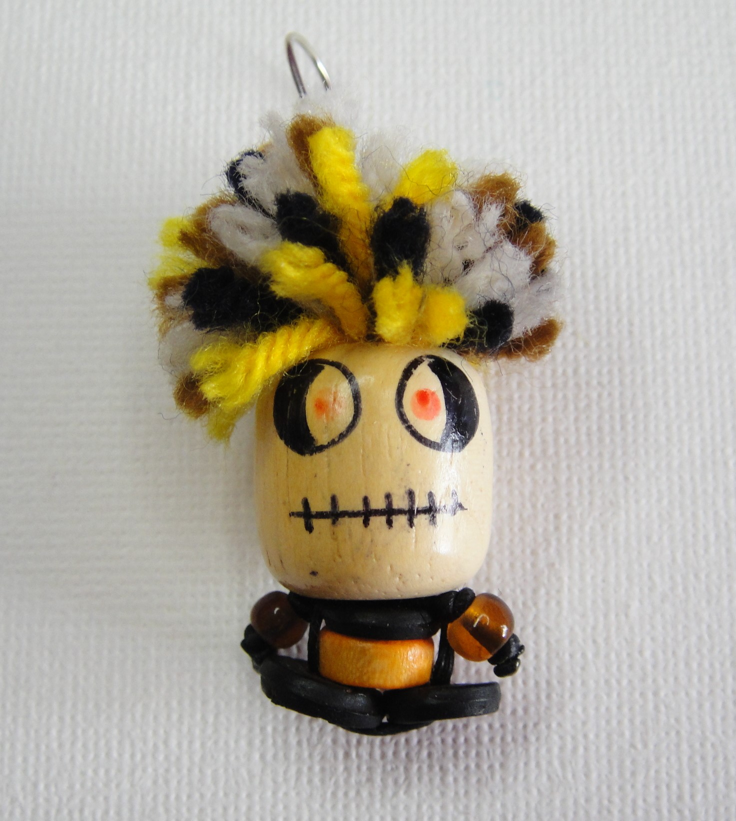 Cosa Nostra Handmade Earrings – Voodoo Doll – Yellow-Black Mute. Εισαγόμενο χειροποίητο σκουλαρίκι Voodoo Doll κουκλάκι από ξύλινες κι απλές χάντρες, κορδόνι, νήμα, βαμμένο στο χέρι σε νίκελ βάση. Συνολικό ύψος: 4.5cm/Βουντού κουκλάκι: 3.5cm.