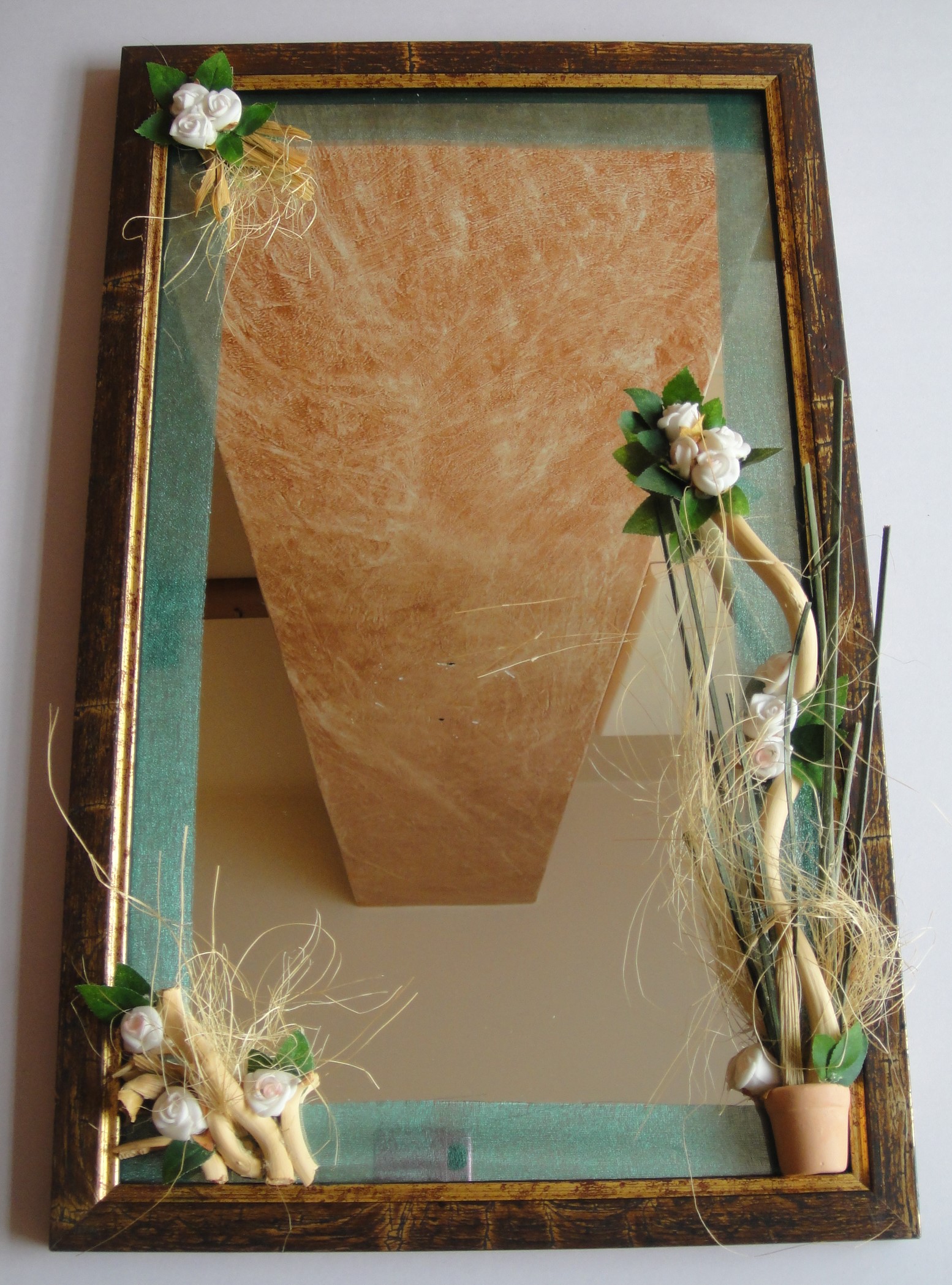 Στη συλλογή μας περιλαμβάνονται καθρέφτες με ξύλινες κορνίζες, φαρδιές ή λεπτές, μαύρες, κόκκινες, πράσινες, σε φυσικό χρώμα, σε ποικίλους συνδυασμούς και διαστάσεις, στολισμένοι με υφασμάτινες φιγούρες, οργάντζα, κορδέλες, κουμπιά, χάντρες, μεταλλικά και ξύλινα στοιχεία, αποξηραμένα λουλούδια-φύλλα και κλαδιά για να διαλέξετε τον ιδανικό για εσάς.