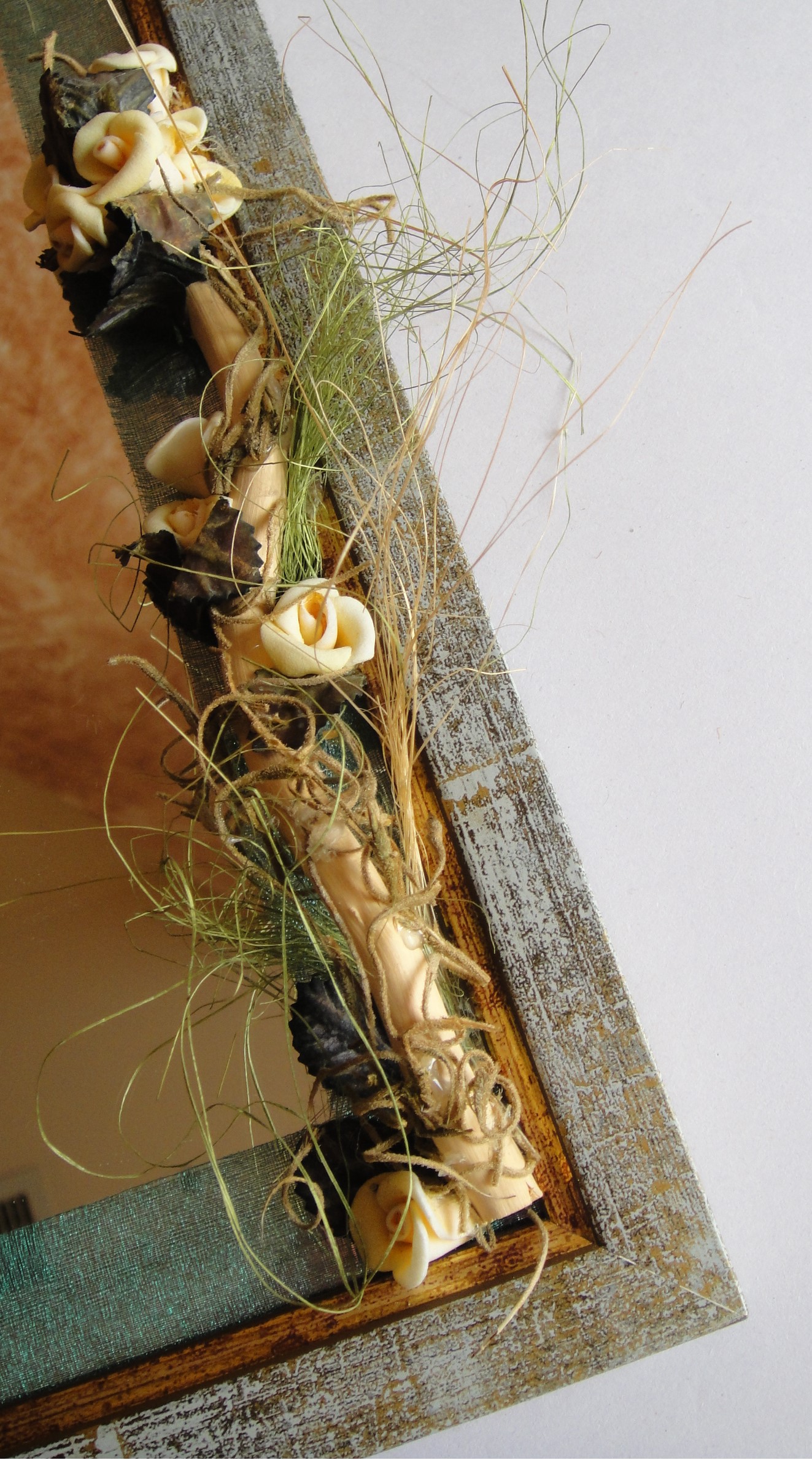 Στη συλλογή μας περιλαμβάνονται καθρέφτες με ξύλινες κορνίζες, φαρδιές ή λεπτές, μαύρες, κόκκινες, πράσινες, σε φυσικό χρώμα, σε ποικίλους συνδυασμούς και διαστάσεις, στολισμένοι με υφασμάτινες φιγούρες, οργάντζα, κορδέλες, κουμπιά, χάντρες, μεταλλικά και ξύλινα στοιχεία, αποξηραμένα λουλούδια-φύλλα και κλαδιά για να διαλέξετε τον ιδανικό για εσάς.