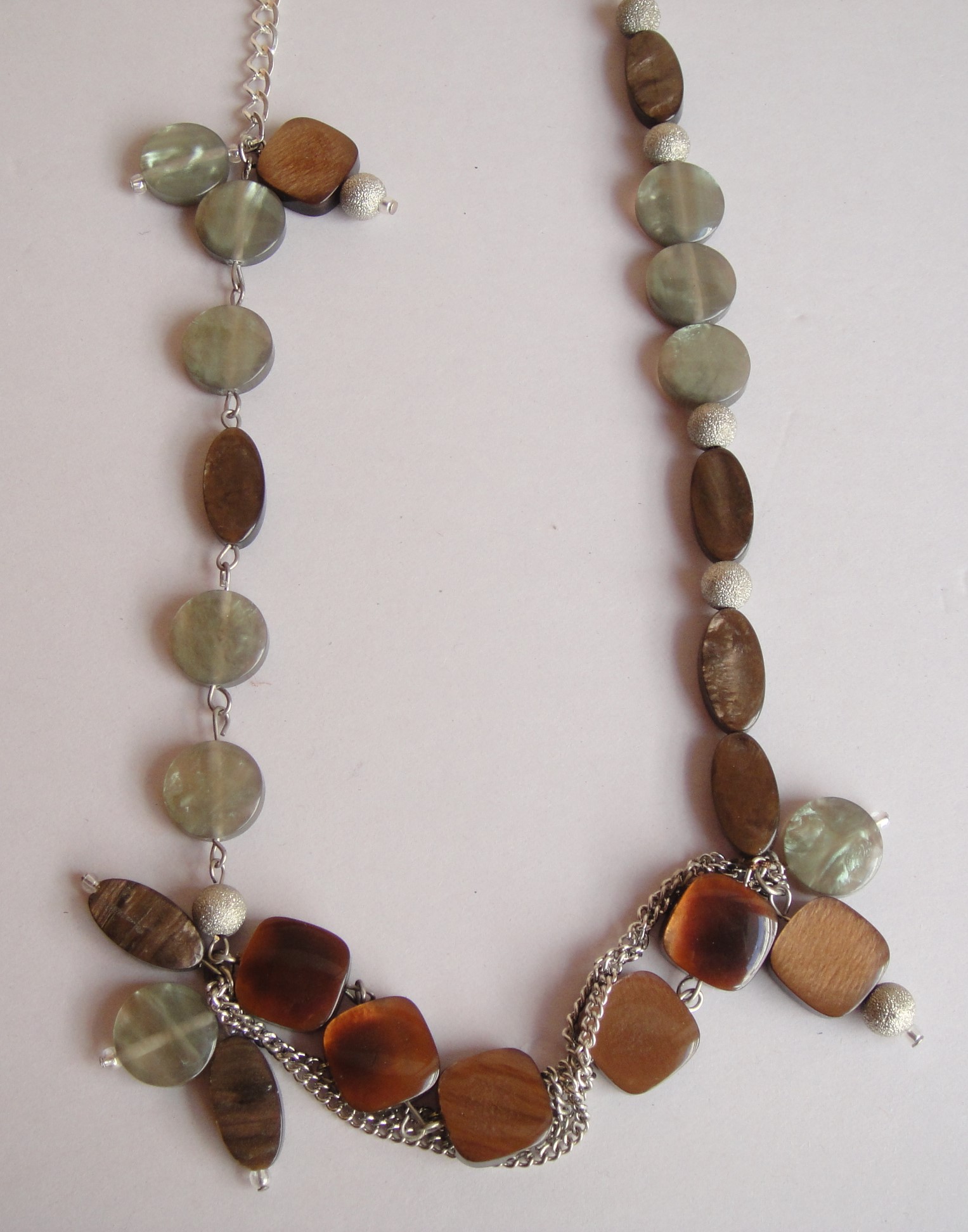 Cosa Nostra Handmade Necklace – Brown Chain String Combo. Χειροποίητο κολιέ από χάντρες (κεραμικές, μεταλλικές, απλές), με κορδόνι κι αλυσίδες-κούμπωμα νίκελ. Μάκρος 40cm.