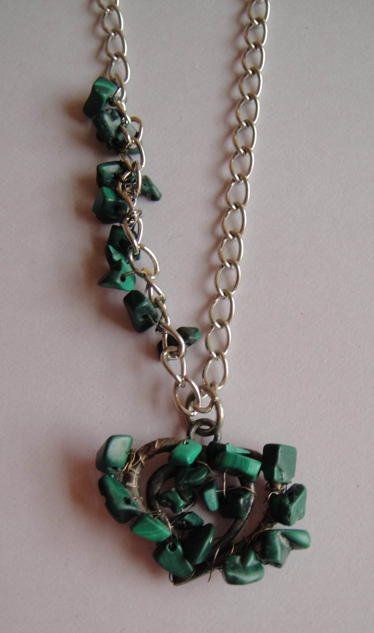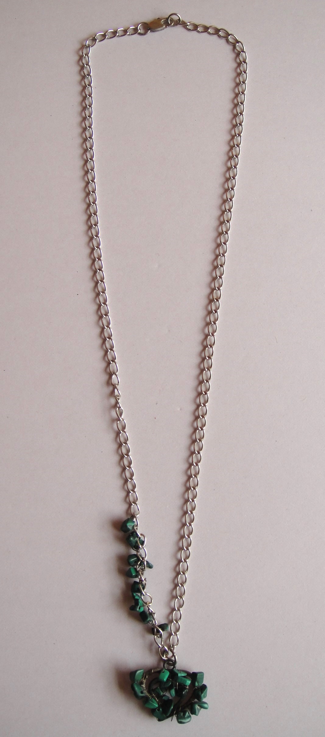 Cosa Nostra Handmade Necklace – Covered Heart. Χειροποίητο κολιέ με μεταλλικό στοιχείο (καρδιά) πλεγμένο στο χέρι με τσιπς ημιπολύτιμου λίθου σε νίκελ αλυσίδα με επάργυρο κούμπωμα. Μάκρος 31cm.